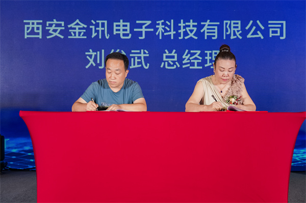 現(xiàn)場簽約環(huán)節(jié)掀起了另一個高潮,西安金訊電子科技有限公司總經(jīng)理劉俊武、