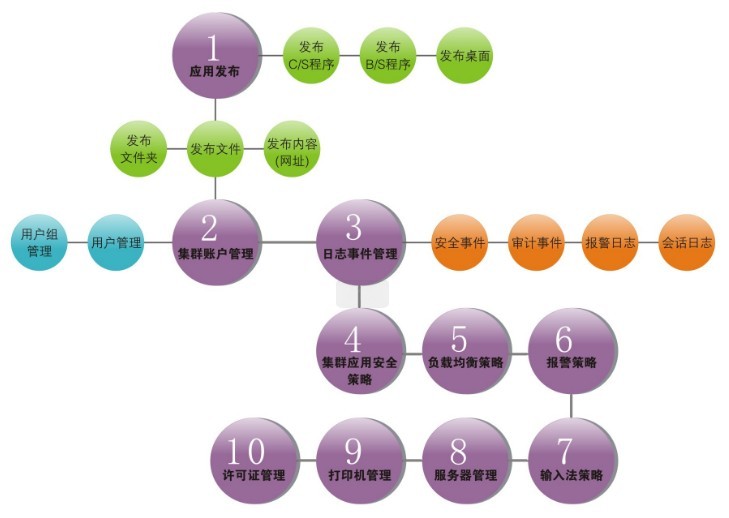可對(duì)C/S 、B/S 等應(yīng)用程序,“ 桌面”、“ 內(nèi)容” 進(jìn)行集中發(fā)布與管理。 |